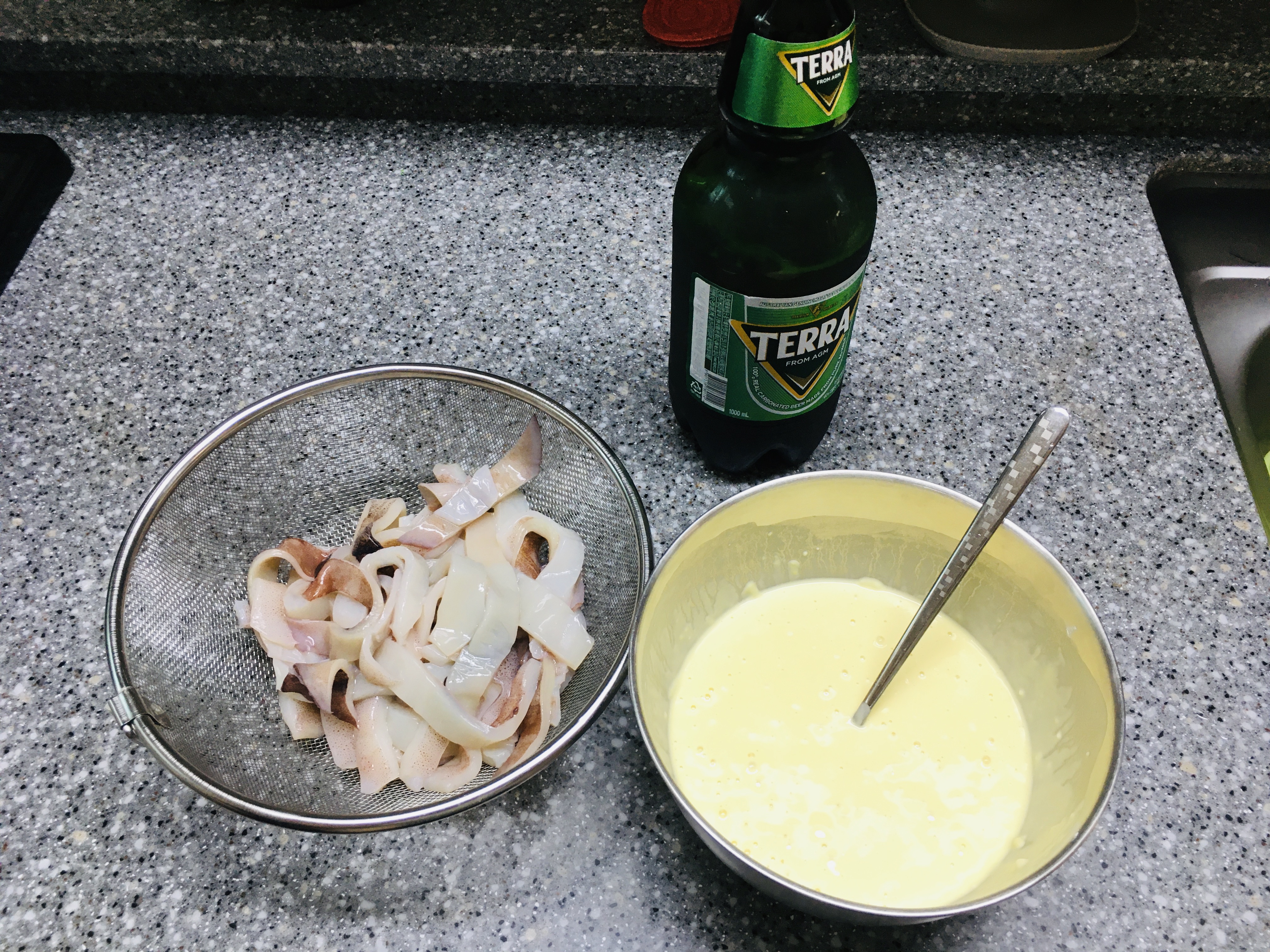 특이사항이라면 튀김가루 반죽을 만들 때에는 물 대신 맥주를 사용하는 겁니다! 이렇게 하면 튀김의 느끼한 맛과 밀가루 냄새를 잡아줘서 질리지 않는다고 하네요!
