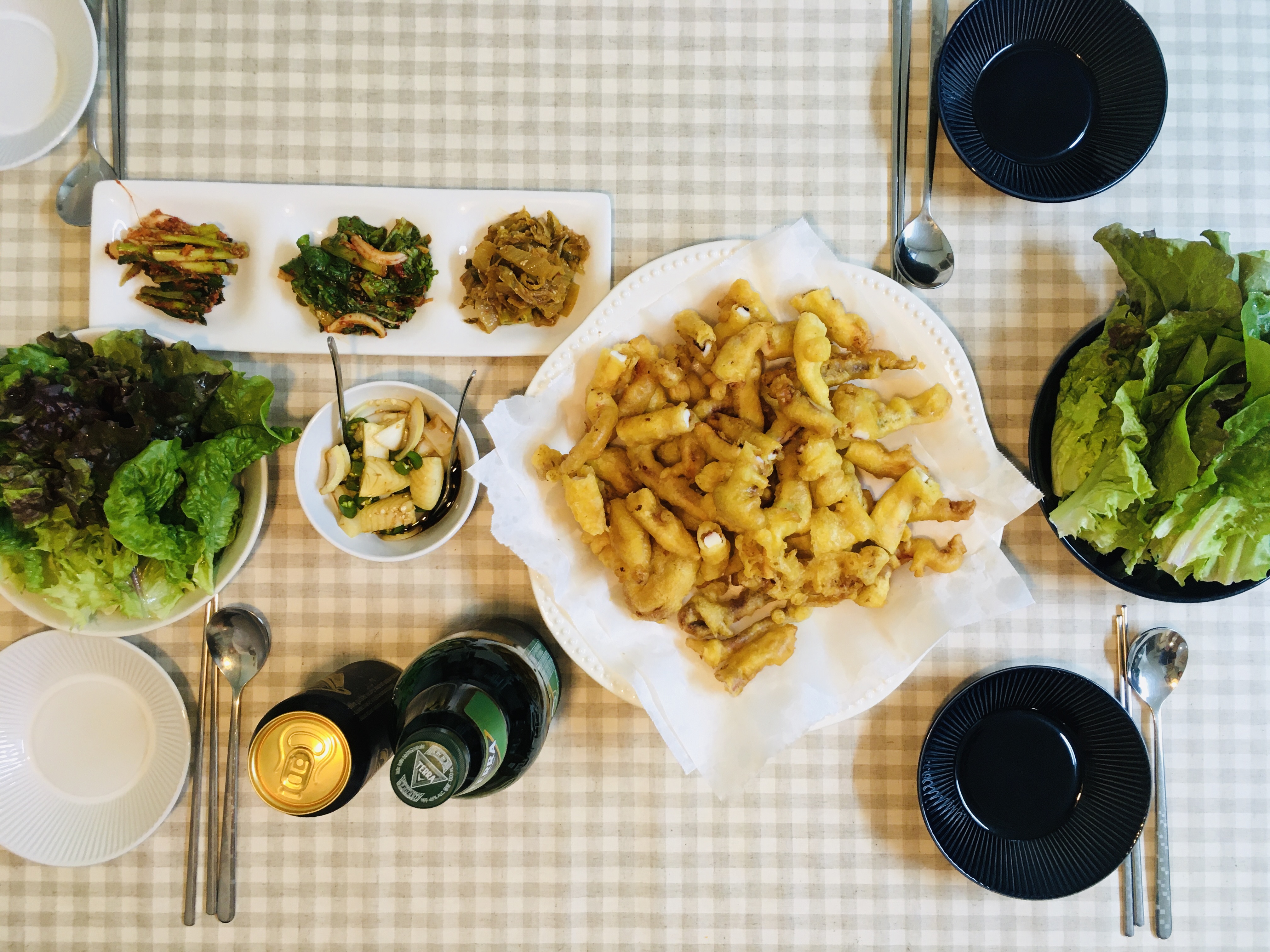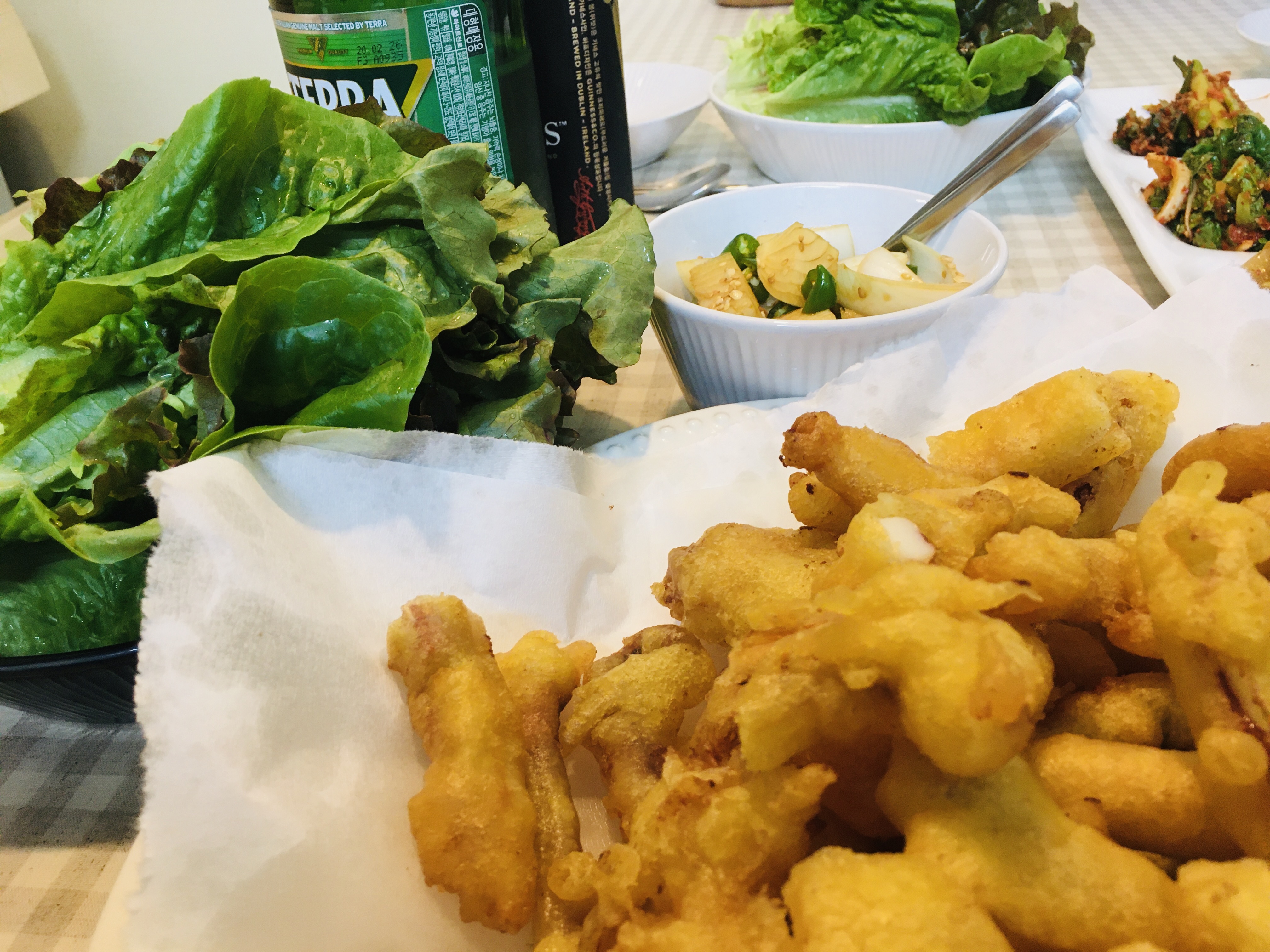 드디어 나왔습니다! 상추튀김! 얼마나 먹고 싶었던지 준비하는 내내 잔뜩 상기되어 있었는데 이제 기분이 좋아질 것 같아요.