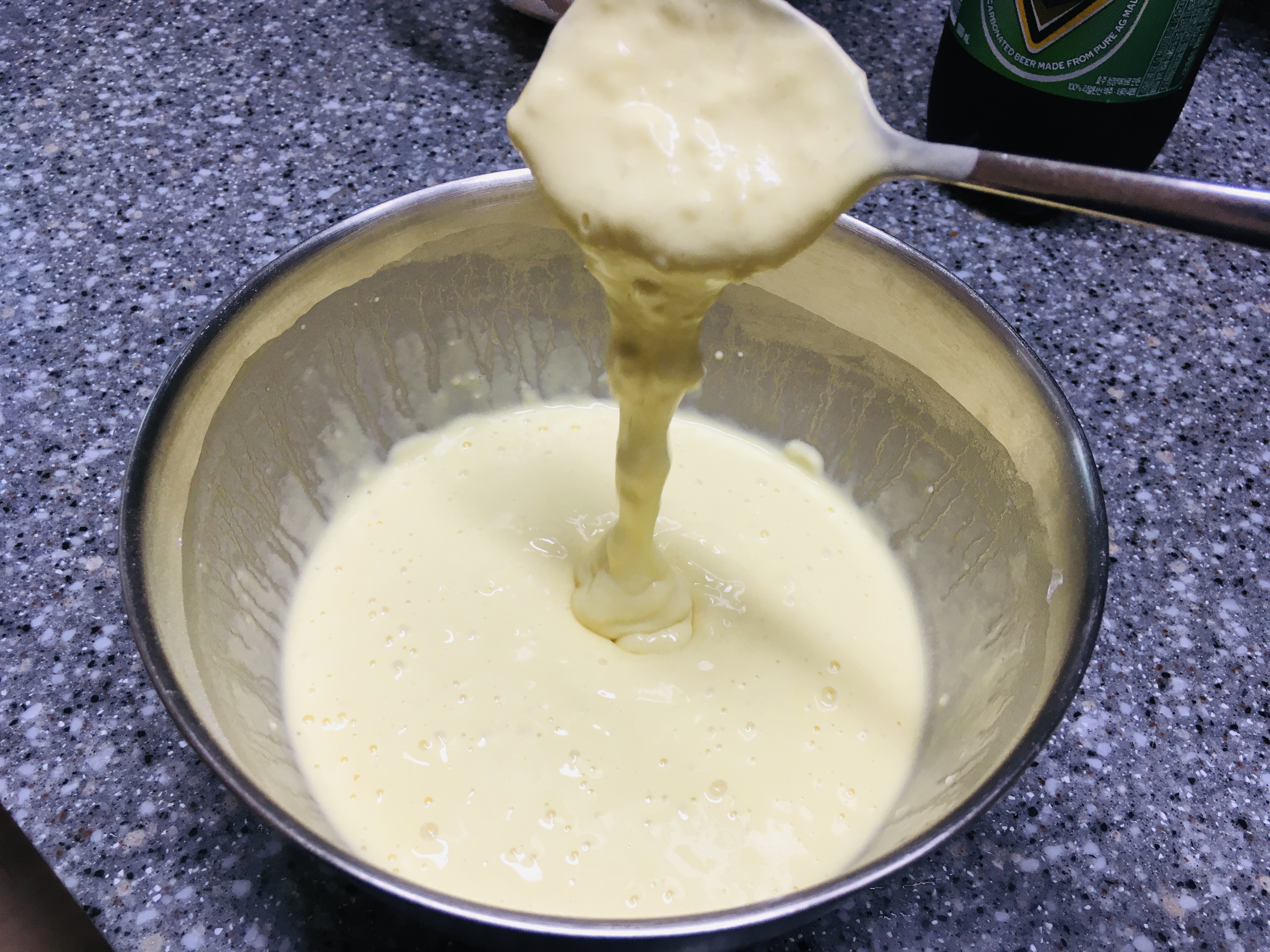 반죽의 걸죽함 정도는 팬케익을 만들때의 정도? 로 하면 될 것 같아요! 설명하기가 좀 애매합니다.